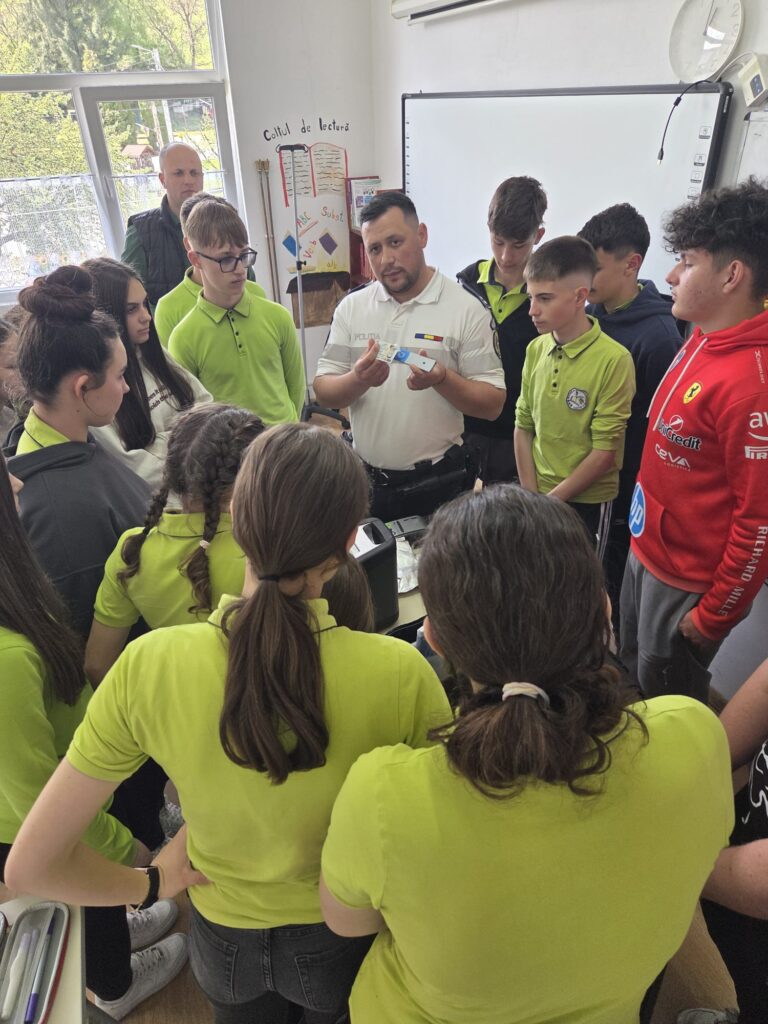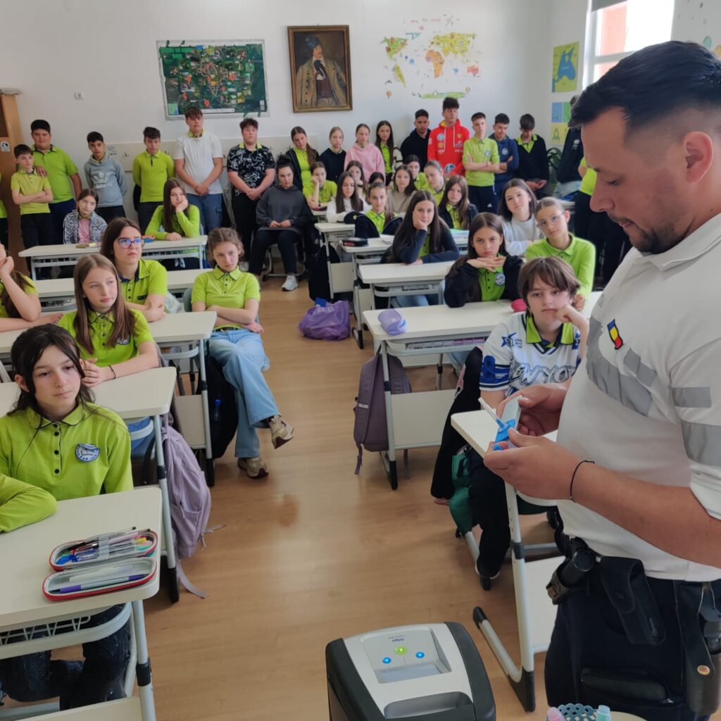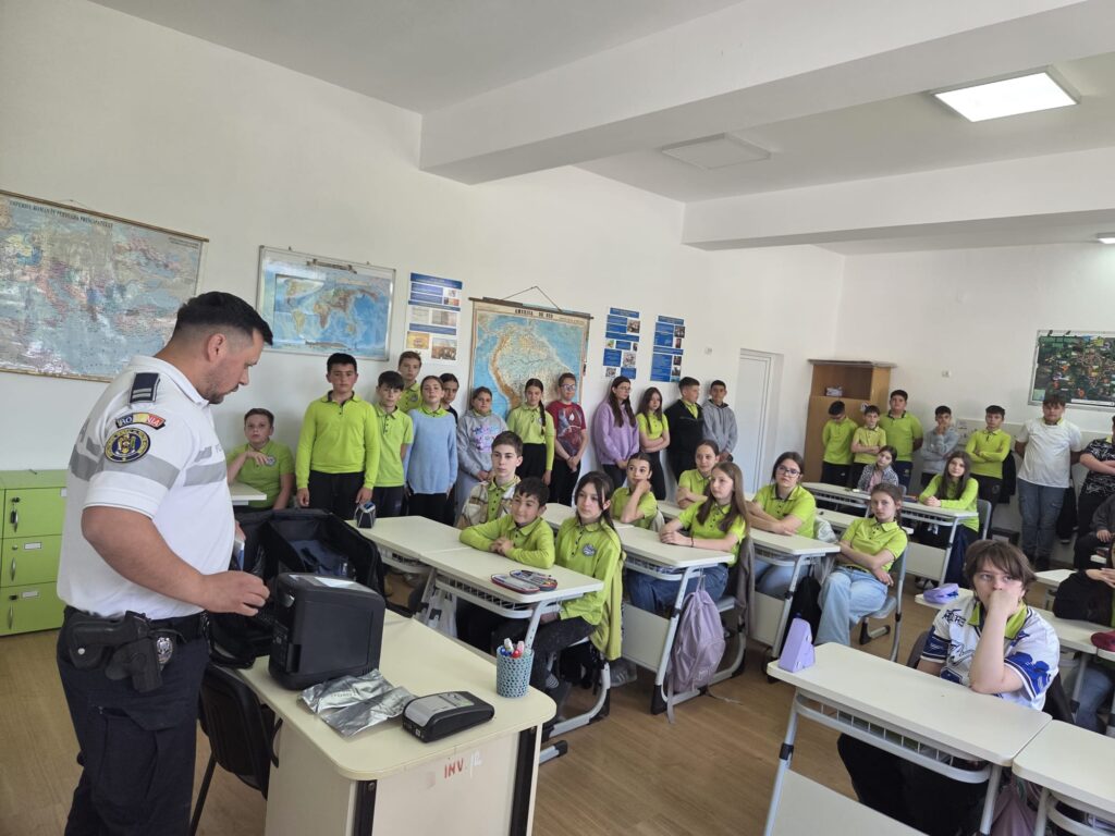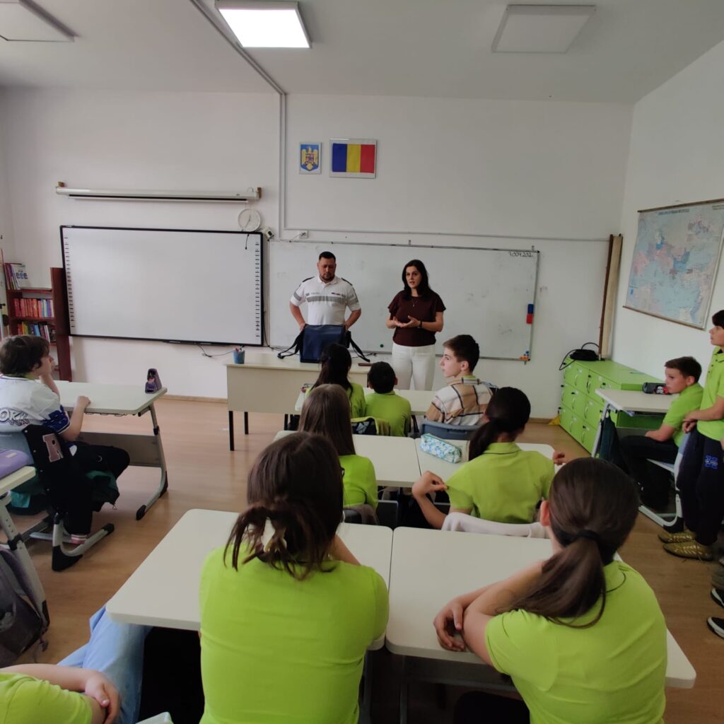 Activitatea a fost susținută de agent principal de poliție Berce Adrian Raul, care le-a prezentat elevilor informații utile și exemple concrete referitoare la prevenirea violenței și a fenomenului de bullying, riscurile asociate consumului de substanțe interzise, precum și măsuri de siguranță în mediul online. De asemenea, au fost abordate aspecte importante legate de siguranța rutieră, cu accent pe comportamentele responsabile în trafic, atât în calitate de pietoni, cât și de viitori participanți activi la circulație.